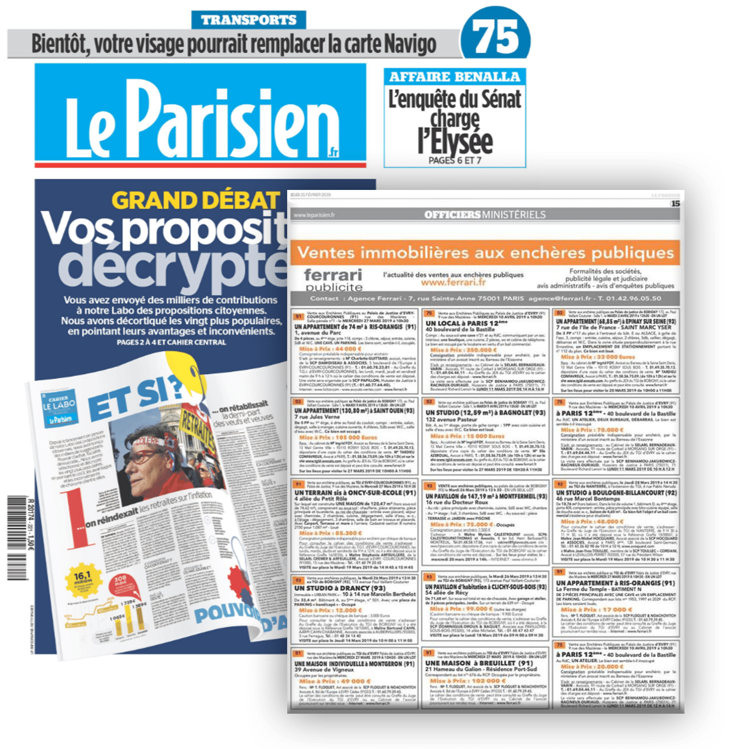 Vous voulez vendre ou acheter aux enchères un bien immobilier ? Le Parisien vous propose de publier vos annonces de ventes par adjudication avec son partenaire Ferrari Publicité.
