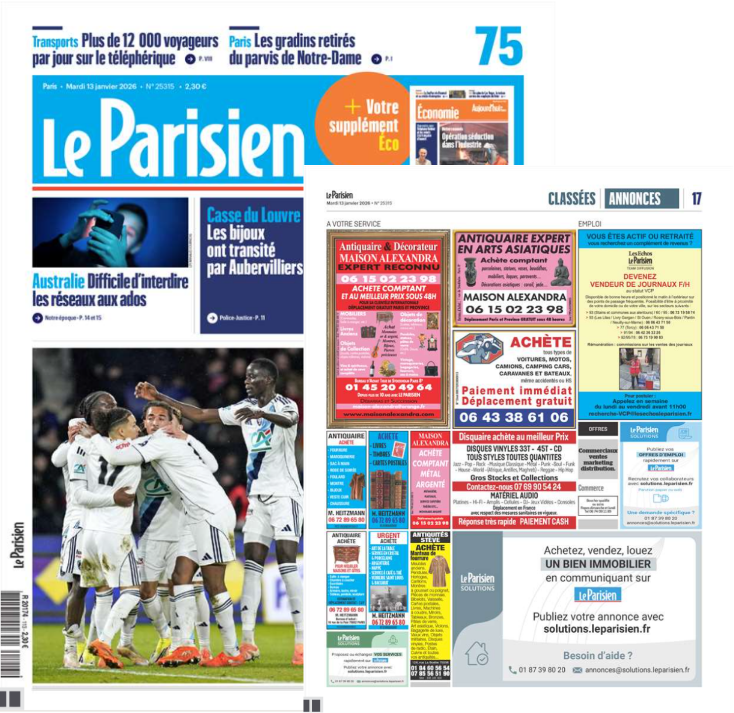 Nous assurons une visibilité maximale pour vos petites annonces grâce à la puissance du journal Le Parisien, recensant la plus forte audience en Île-de-France avec plus de 2,5 millions de lecteurs chaque jour*.